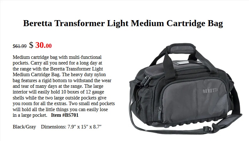 The guns are on the road for the summer and will not return to Massillon until August 19. You can see the full inventory at the three Cardinal shoots in Marengo in June, July, and August. Also, please note that we will be closed in Massillon on July 4 and July 28 thru August 18.